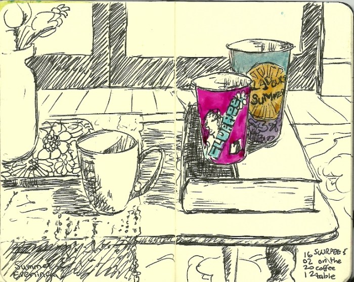 Summer Evening ……………..with empty Slurpee cups in small and medium size. Share this: Click to share on X (Opens in new window) X Click to share on Facebook (Opens in new window) Facebook Like Loading... Related