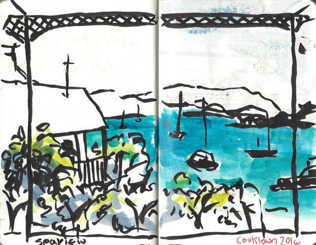 The picture above shows the view I had from the Seaview Motel, worth every bit of its three stars and retro 1950’s feel. Our room was situated on the top level of a tiered garden. It had a concrete floored veranda and a set of unpretentious balcony furniture at which to sit and watch the sunset over The Endeavour River.