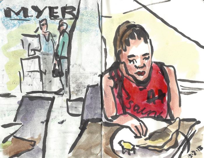 Old stand at the Sydney Cricket Ground, adorned in Pink and renamed The Jane McGrath Stand, for this Pink Day, the third day of the last test match v India Cricketers in the blinding sun. Pink hats.